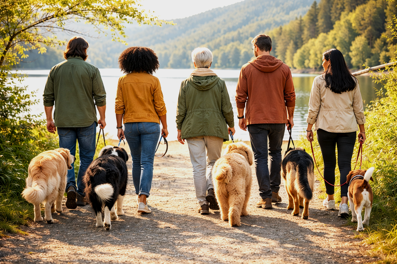 Wasser, Vögel, offene Flächen, Wege, Menschen, Hunde 🐦🐕🌊.